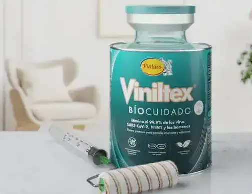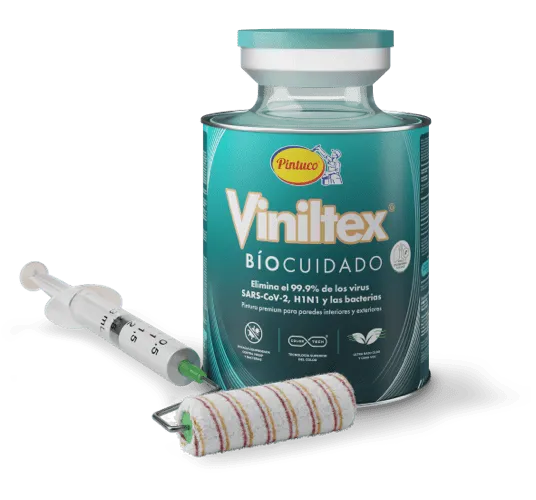 Hoy te presentamos Viniltex Bíocuidado, la primera pintura en Colombia que elimina hasta el 99,9% de los virus SARS-COV-2, H1N1 y de las bacterias en las superficies que es aplicada.