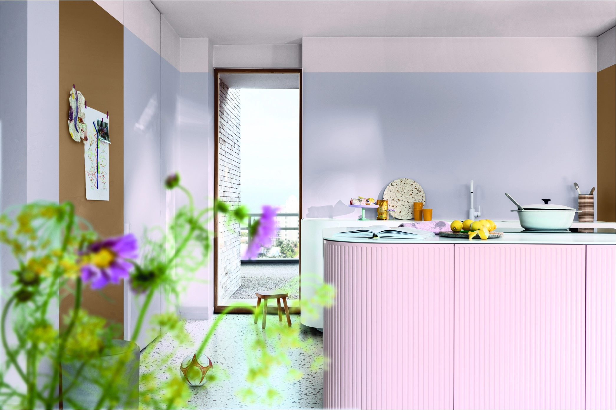 En tiempos difíciles, queremos que nuestros hogares sean espacios alegres y acogedores que nos ayuden a sentirnos positivos. Una combinación moderna de lilas y amarillos suaves, perfecta para crear combinaciones divertidas que pueden añadir impacto a cualquier ambiente sin resultar atrevidas o intrusivas. Estos colores combinan a la perfección con materiales naturales y realzan cualquier colección de muebles. Lo único que falta agregar: un ramo de flores.