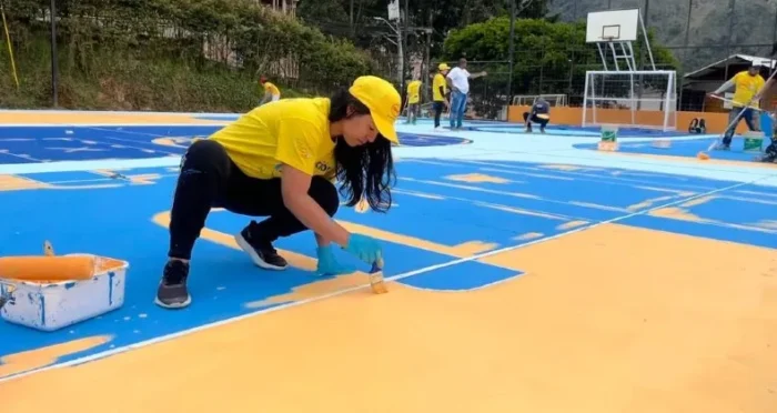 Durante el 2022, la Fundación Caminos a través del programa de apoyos estratégicos de la Fundación Pintuco y el involucramiento de la comunidad, obtuvo una donación de pintura con la que pudo iniciar la intervención se pintaron las gradas de la cancha y la fachada de la casa de la música y se realizó un mural.