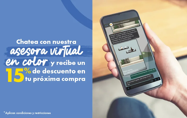 - Escribe al whatsapp de la decoradora virtual Pintuco +57 3330333707
