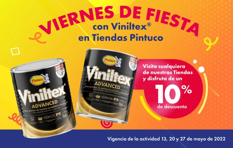 Este reglamento (TyC) delimita las condiciones bajo las cuales se regirá la actividad promocional denominada “Descuentos Viernes de Fiesta Viniltex”, en adelante la Actividad, la cual consiste en brindar a los consumidores, descuentos del 10% productos seleccionados de la marca Pintuco.