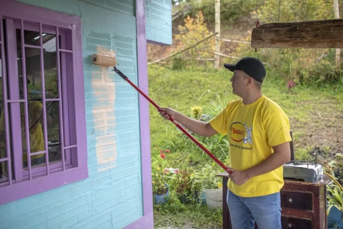Desarrollamos programas con acciones enfocadas en transformaciones con color, las cuales buscan instalar capacidades en las comunidades, partiendo del mejoramiento del hábitat de poblaciones vulnerables en Colombia como foco de su actividad social.
